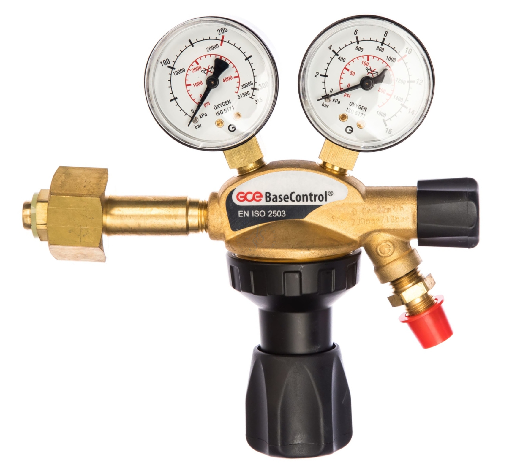 Reduktor butlowy GCE BASECONTROL ARGON CO2 jednostopniowy z dwoma manometrami.