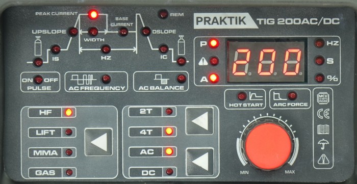 SKU: PTIG200AC Kategorie: AC/DC, Ideal, Urządzenia spawalnicze, Urządzenia TIG Tag: zestawy TigPRAKTIK TIG 200 AC/DC
