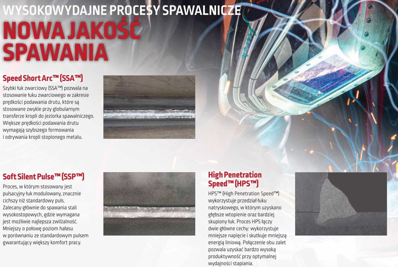 - Soft Silence Pulse™ – niższy poziom hałasu, zwiększona zwilżalność przy spawaniu stali wysokostopowych.