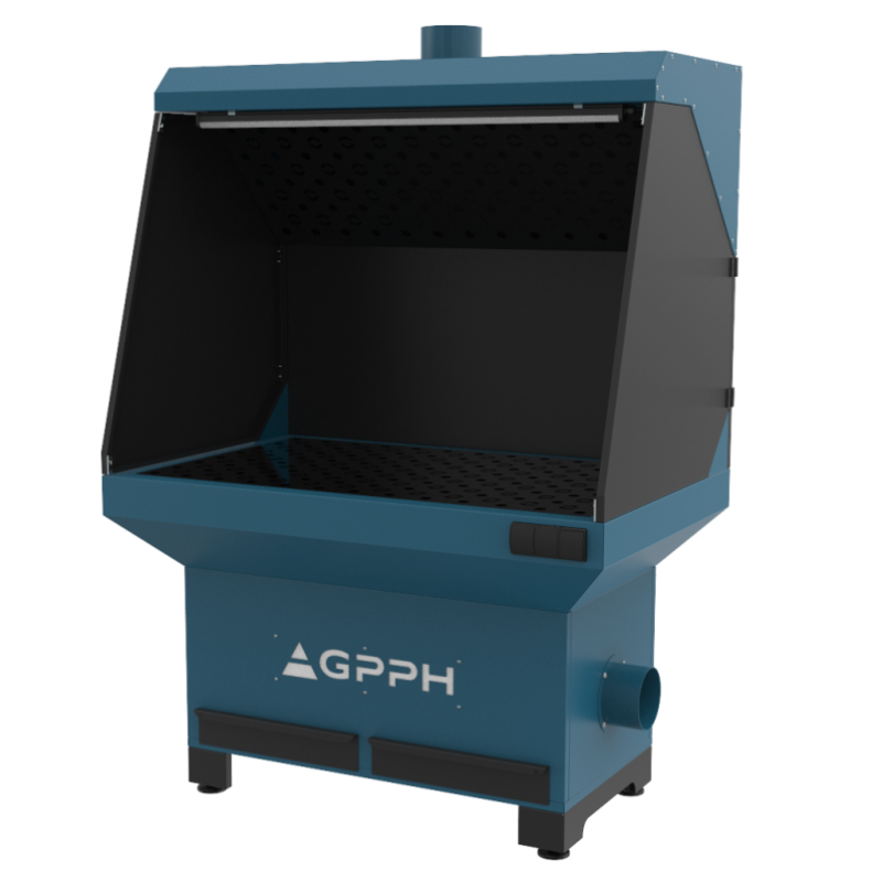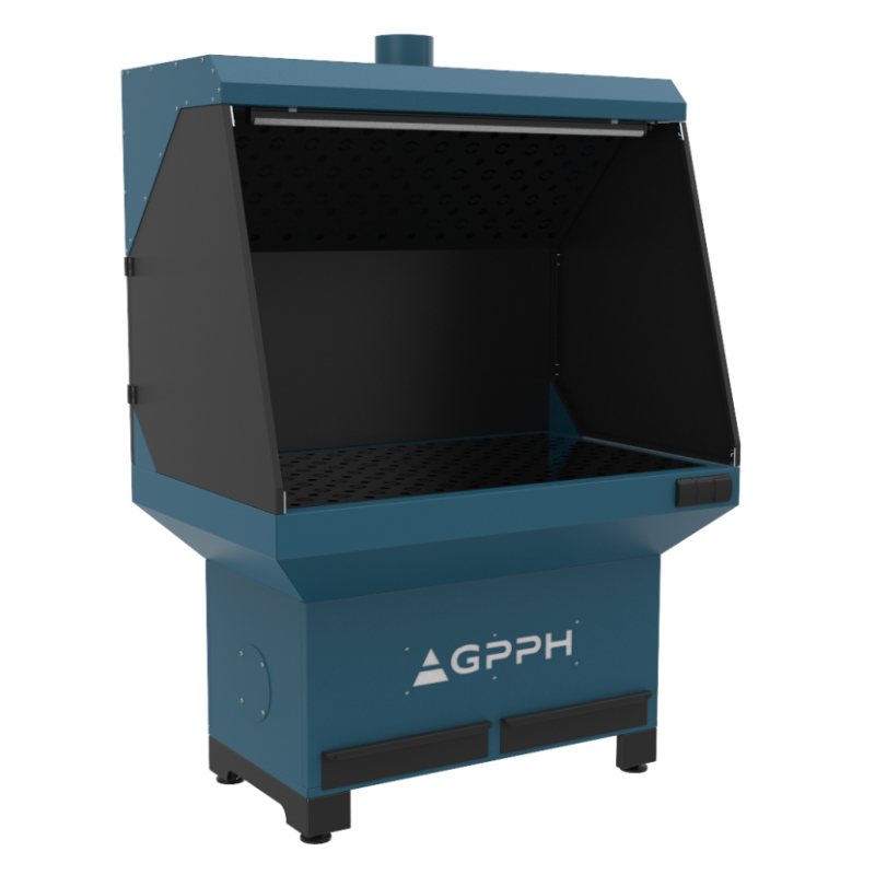 Stanowisko szlifiersko-spawalnicze służy do wychwytywania oraz usuwania pyłów i gazów powstających przy szlifowaniu ręczną szlifierką lub pracach spawalniczo-ślusarskich. Stanowisko może współpracować z wentylatorem wyciągowym lub z urządzeniem filtrowentylacyjnym