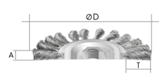 Numer katalogowy: G07TM.45 Średnica zewnętrzna [ D ] mm: 120 Nakrętka M14 Szerokość [ A ] mm: 15 Długość wypełnienia (drutu) [ T ] mm: 28 Max obr./min: 8500 PN-EN 1083-2