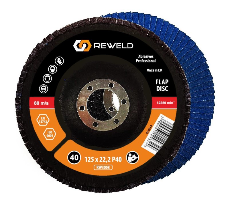 Tarcza listkowa REWELD 125×22,2 Gr. P40 / P60 (lamelkowa) z nasypem cyrkonowym.o zwiększonej wydajności do stali nierdzewnej, żelaza, stali stopowych, metali kolorowych, tworzyw sztucznych.