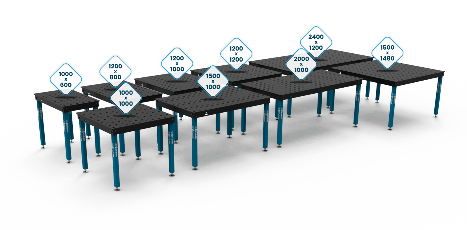 Stoły Spawalnicze BASIC dostępne są w aż 9 różnych wersjach, które występują w wymiarach od 1000x600mm do 2400x1200mm. Nie ważne, czy spawasz wielkogabarytowe konstrukcje, czy wykonujesz mniejsze, precyzyjne prace – wśród dostępnych rozmiarów na pewno znajdziesz ten odpowiedni dla Ciebie!