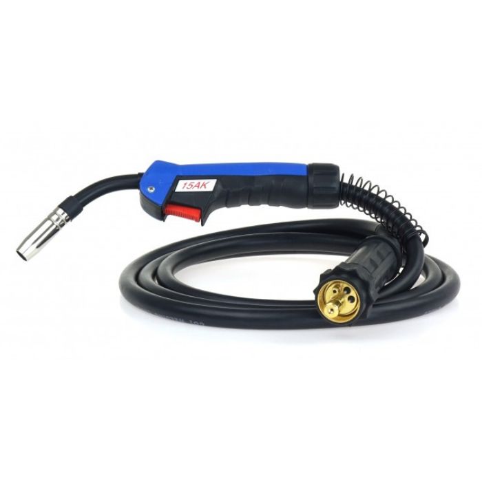 Profesjonalny uchwyt spawalniczy do urządzeń MIG. Prąd spawania dla cyklu pracy 60%: 180A (gaz CO2), 150A (mieszanka Ar/CO2).