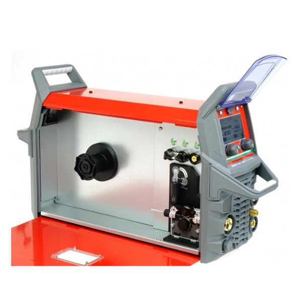 Sterowany mikroprocesorem inwertorowy, wielofunkcyjne źródło spawalnicze do spawania metodą MIG/MAG, TIG AC/DC oraz MMA. Prąd spawania 230A. Zasilanie 230V. Średnica drutu spawalniczego 0,6-1,2mm. Podajnik drutu 2-rolkowy. MMA/TIG. Pełna synergia.