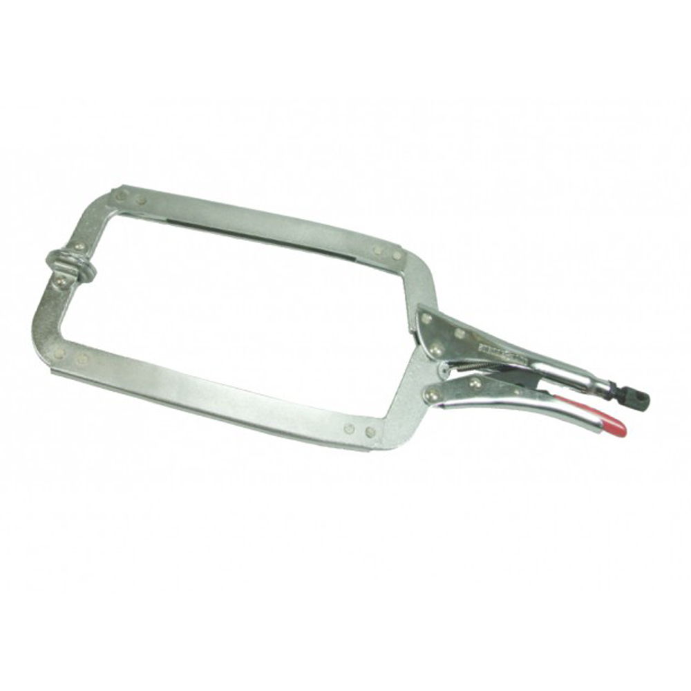 Kompaktowy, lekki, przenośny zacisk do szybkiego montażu rur i okrągłych kołnierzy do spawania doczołowego z przyciskiem zwalniającym.